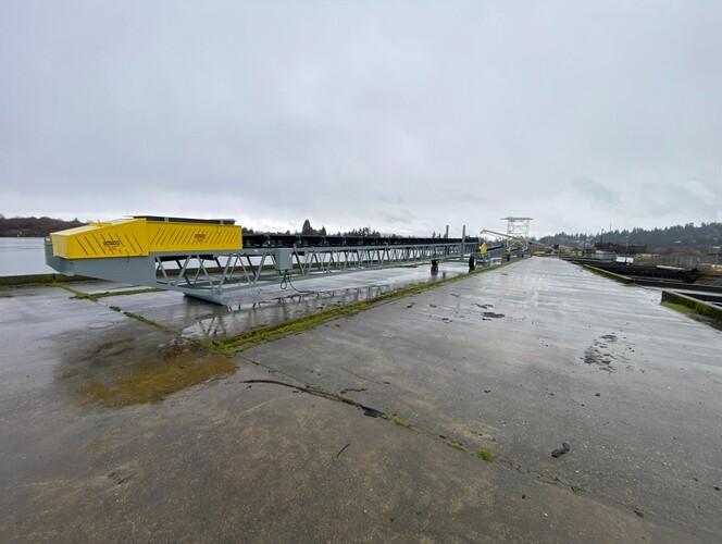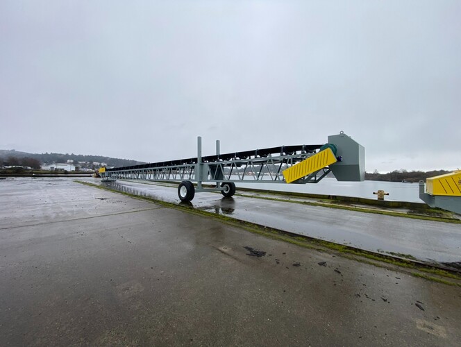 c) 6’ long rock box receiving hopper bolted to the tail terminal complete with skirtboards and adjustable rubber flashing.