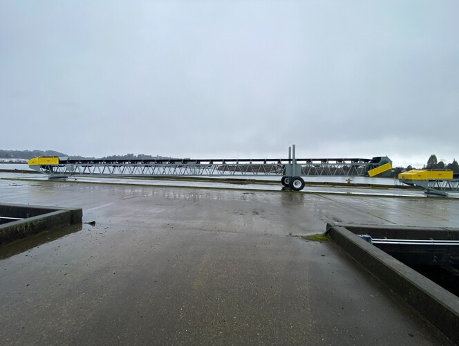 g) Conveyor undercarriage constructed of heavy duty tube permitting adjustable inclination of the conveyor; single wheels with 425/65R-22.5/20 high flotation pneumatic tires; field tow hitch.