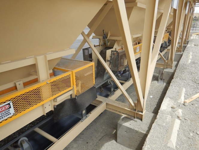 •  Eight 30-ton capacity feed hoppers with adjustable rate 30” wide roller belt feeders to provide various predesigned mixes to the asphalt plant.