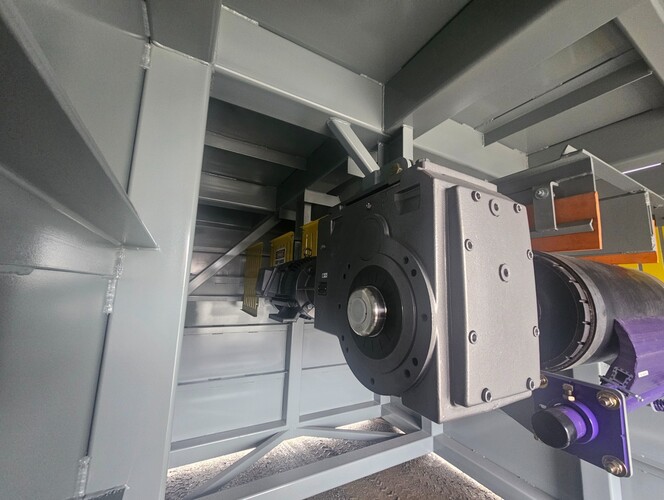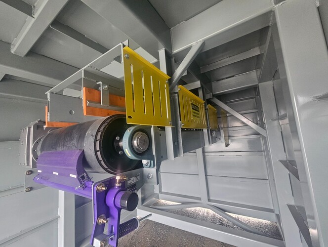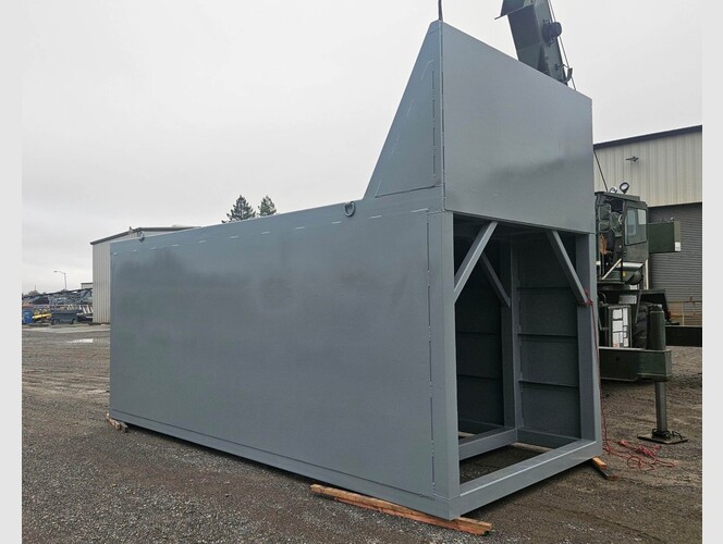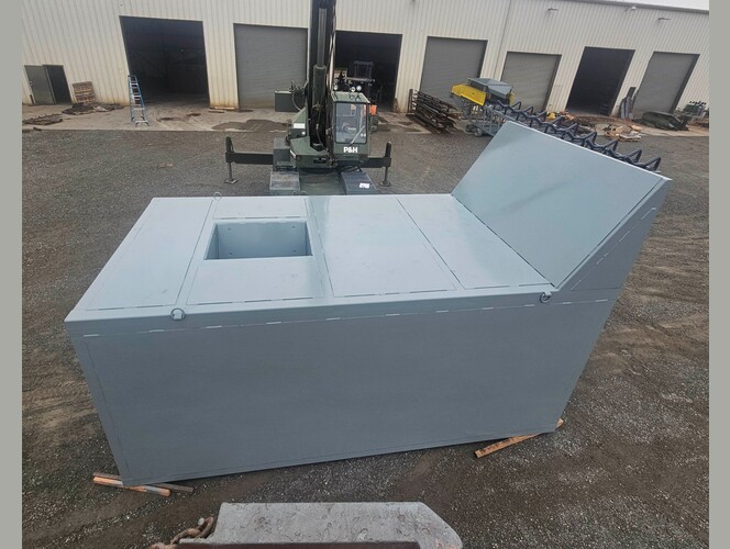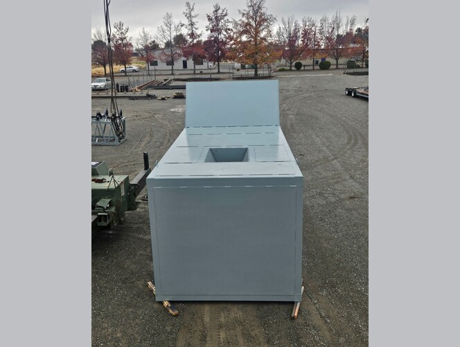 b) 3’ wide x 4’ long top hopper opening; hopper constructed of 1/4” thick steel plate with 1/4” thick AR400 liners.
