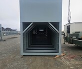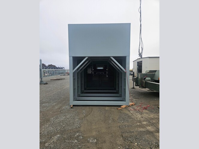 a) Dozer trap skeletal framework constructed of rectangle and square tubing with reinforcing and 1/4” thick plate skin.