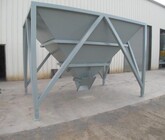 Rock Systems Gravity Flow Hopper model 103-8 with 12’-0” wide x 7’-6” deep hopper opening; 8 cubic yards storage capacity; hopper walls constructed of 1/4” thick steel plate with reinforcing; bolt on adjustable slide gate; steel fabricated support structure constructed of square tubing with cross bracing; adjustable height support legs with base plates adjust in 3” increments; one rust inhibitor prime coat and one finish coat gray enamel paint.