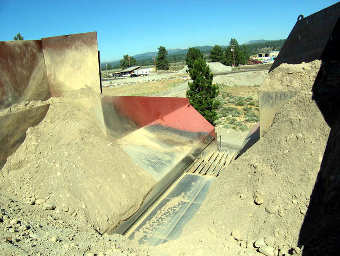b) 50 ton capacity rock box receiving hopper constructed of 3/4" thick plate steel with reinforcing.